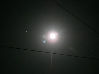 今夜は、月の近く(左)に木星が近づいて見えていますね。 ほんとは明日がかなり近づいて見えるみたいですが、 明日の夜は雨み…