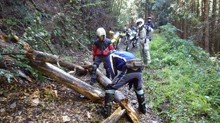たらさんが先日の林道の写真を持ってきてくださったので、 ご紹介! この日は倒木が多かったですね~ 初参加のセローのFさん…