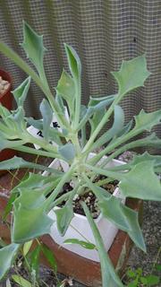 今朝、カーポート脇に雨ざらしで置いてる”マサイの矢尻”を見ると、 花が咲いていました(^-^) 他の多肉とはなんか違う感…