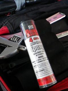 いつも山に持って行くツールバッグに、 ”エポキシ補修剤”が新たに仲間入り。 スティック状で、主剤と硬化剤がすでに適量配合…