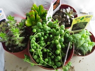 台風一過で爽やかな朝。 ”子持ち蓮華”に花芽(たぶん)が出てきたみたいです。 今朝の作品。 苗がたまってきてたから大きめ…