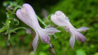 今日は降ったりやんだりのびみょ~な天気・・・ 山に行けないこんな日は庭いじり。 草取りしてたら、庭のはじっこに見知らぬ花…