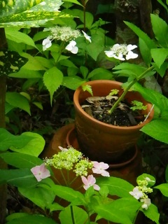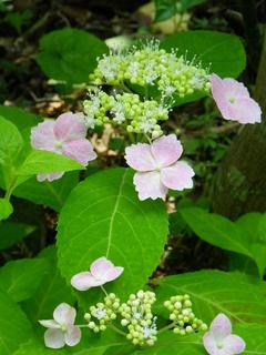 ”山あじさい”が見頃。 アジサイは真ん中のが花だそうですね。 種類はわかんないですが、ユリも今朝咲きました。 毎年ちっち…