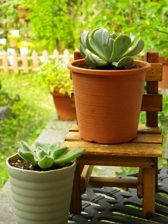 今朝は、先日マスターからいただいた多肉を一回りくらい大きな鉢に植え替え。 大きくなれよ! センペルビュームの”レインハー…