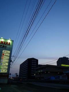 月が、夜の側に戻ってきましたね~(^-^) 展示してるバイクを片づけてると、 暗くなるにつれ沈んでいく細い月が西の空に見…