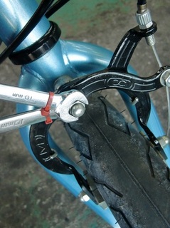 先日お預かりした自転車のメンテの続き。 ブレーキは初めてさわるこのタイプのですが、 ここのダブルナットのとこで調整できる…