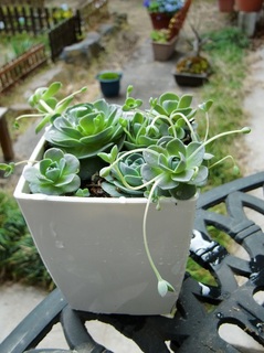 セダムの”子持ち蓮華”で一鉢作った。 (最近は、”セダム”というジャンルを新たに知ってしまい、庭に着々と増えている・・・…