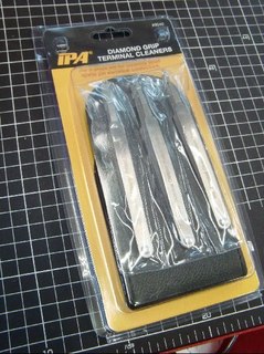 ”ターミナルクリーナー”を買った。 ピンセットみたいな形状で、先が細かいヤスリのようになっています。 ターミナルに刺して…