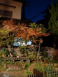 庭のモミジにライトをあてて、居間から夜の紅葉を楽しみます(*^-^) (庭にモミジがあって、お義父さんお義母さんに感謝!…