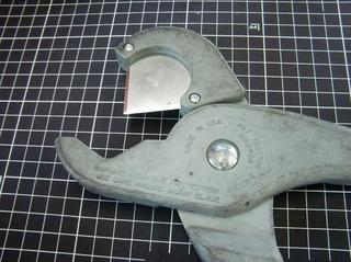こちらの、ホースを切るためだけの工具。 なかなか優れもので、 このようにして燃料ホースなどをセットし切ると、 切り口がと…