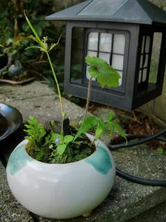 庭でいろいろ採取して作品作り。 いつもひっこぬいてる雑草も、こうして鉢あげしてあげればけっこういいもんだね~(^-^) …