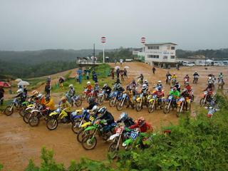 9:20、レーススタート! YSPチームは2台なかよく並んでスタート。 雨が降ったりやんだりのマディーのレース。 みんな…