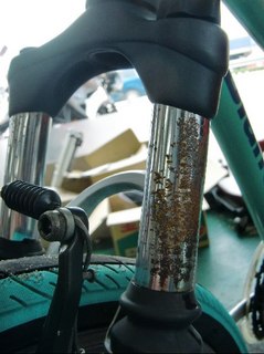先日よりお預かりしてた”ビアンキ”のメンテナンスが完了しました! 錆びてたインナーチューブは、 なんとかここまで錆を除去…