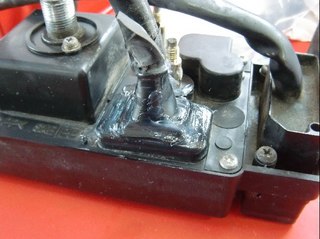 DRZのデジタルメーターの配線が入っていくとこのシールが弱くなってたので、 水が入らないようシリコンガスケットで補修。 …