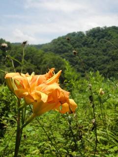 今日は昼から山へ! (ヤブカンゾウ) 藤尾ダムの水位は、だいぶ元に戻ってました。 あまりの暑さに、オオマツヨイグサの花も…