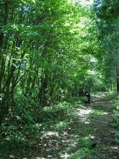 気を取り直して通ケ谷山林道へ! こちらは通り抜け可能で、なんだかとても涼しく気持ちよく走れましたが、 雨のせいか木が流れ…