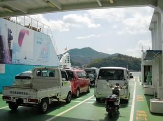 積善山をおりてきて、長江港からフェリーに乗って因島へ! (遠くに見えているのは生口橋です) 因島に上陸して、島の東側の海…
