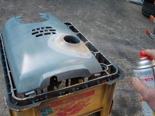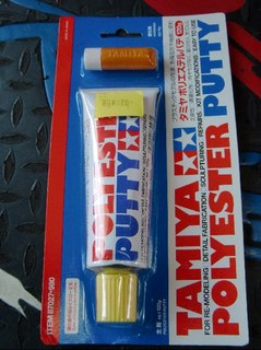 ペーパーで磨き、塗装をおとすと予想以上に亀裂が深い・・・ この、”肉やせ”の少ないパテで埋めて補修します。 (パテで埋め…