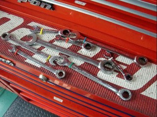 ギヤ付きのコンビネーションレンチの、 分解できないギヤ部分に給油をするため、 (しかし、どうやってこれをはめ込んでるんで…