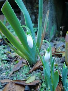 今朝、庭に出ると、 ”スノードロップ”が今にも花開きそうでした! 花壇のはじっこの方に植えてたのを忘れてた”すずらん咲き…