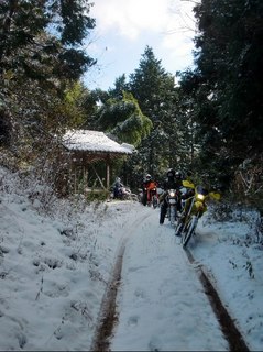 次に入った林道は、法雲寺脇の林道。 ここは下るばっかりなので、 雪は積ってましたが、難なくクリア。 県道26号線に出てき…
