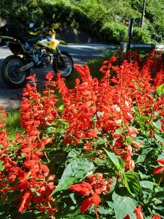 四国の山奥の道の沿道には、 いたるところに手入れのゆきとどいたきれーな花壇がたくさんありました。 『サルビア』 すごい山…