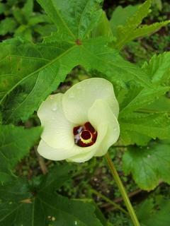 今朝も庭にはオクラの花が咲いています。 オクラの花は朝開いて、昼には閉じ、次の日にはぽとっと落ちて、 花があった根元には…