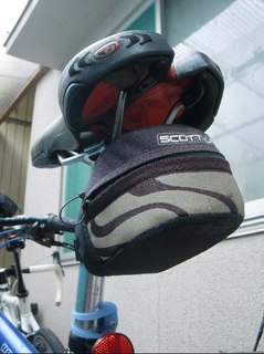 MTBのサドルバッグには、これらのものが入ってます。 予備チューブ、携帯工具、空気入れ、パッチ、タイヤが裂けた時用のでっ…