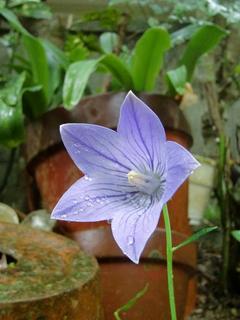 先日、安売りされてたのを買ってきて植えてた”キキョウ”の花が今朝咲きました。 キキョウは秋の七草のひとつです。 葉が傷ん…