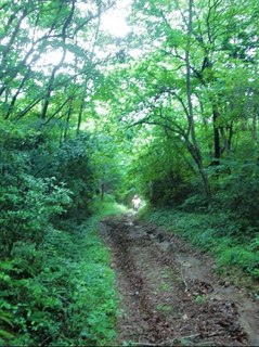 中腹でちょっと休憩。 汗だか雨だかもうわかりませんが、びっしょびしょ・・・ さらに上を目指します! が、上はさらにひどい…