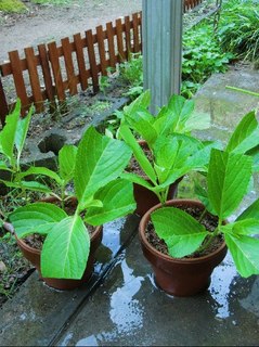 一晩”水あげ”したアジサイの枝を鉢へ移動。 ここから根をはるまでが緊張の時です・・・ 水の中にさしてる時は、みずみずしい…