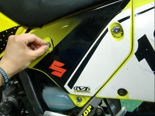 林道走行から帰ってきて洗車してると、カウルが外れてたり、 岩にヒットしたのか、ここが変形してもげてたりと、いろいろダメー…